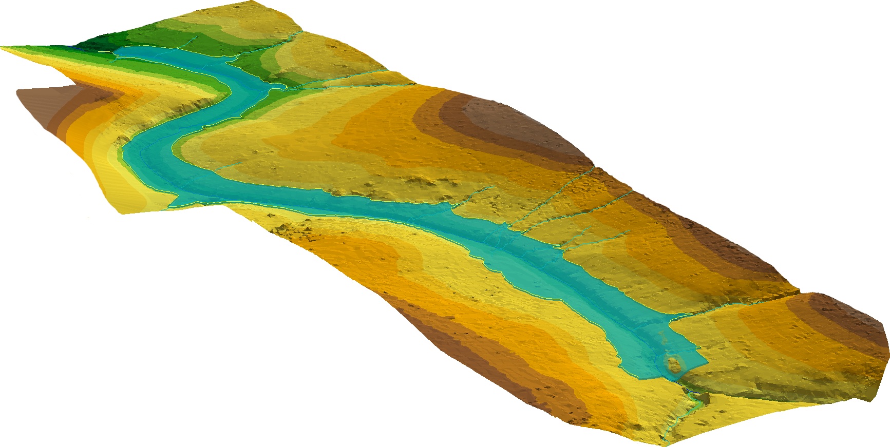 The next step is to have the banks of the river or stream surveyed in order to produce a number of cross sections through the stream or river valley. These will then be used to plot the elevation points of the flood line at that particular cross section.